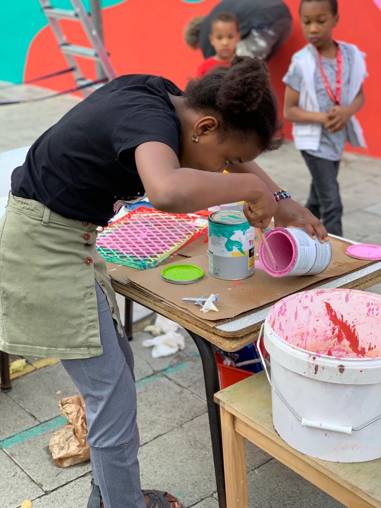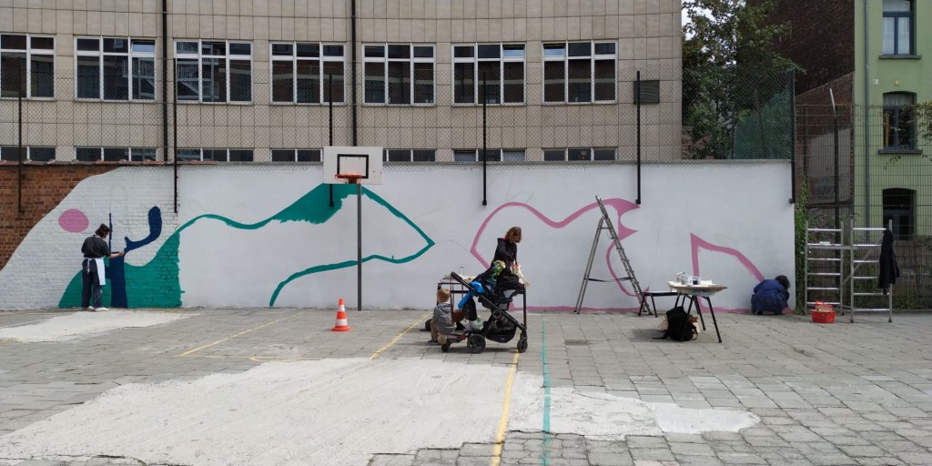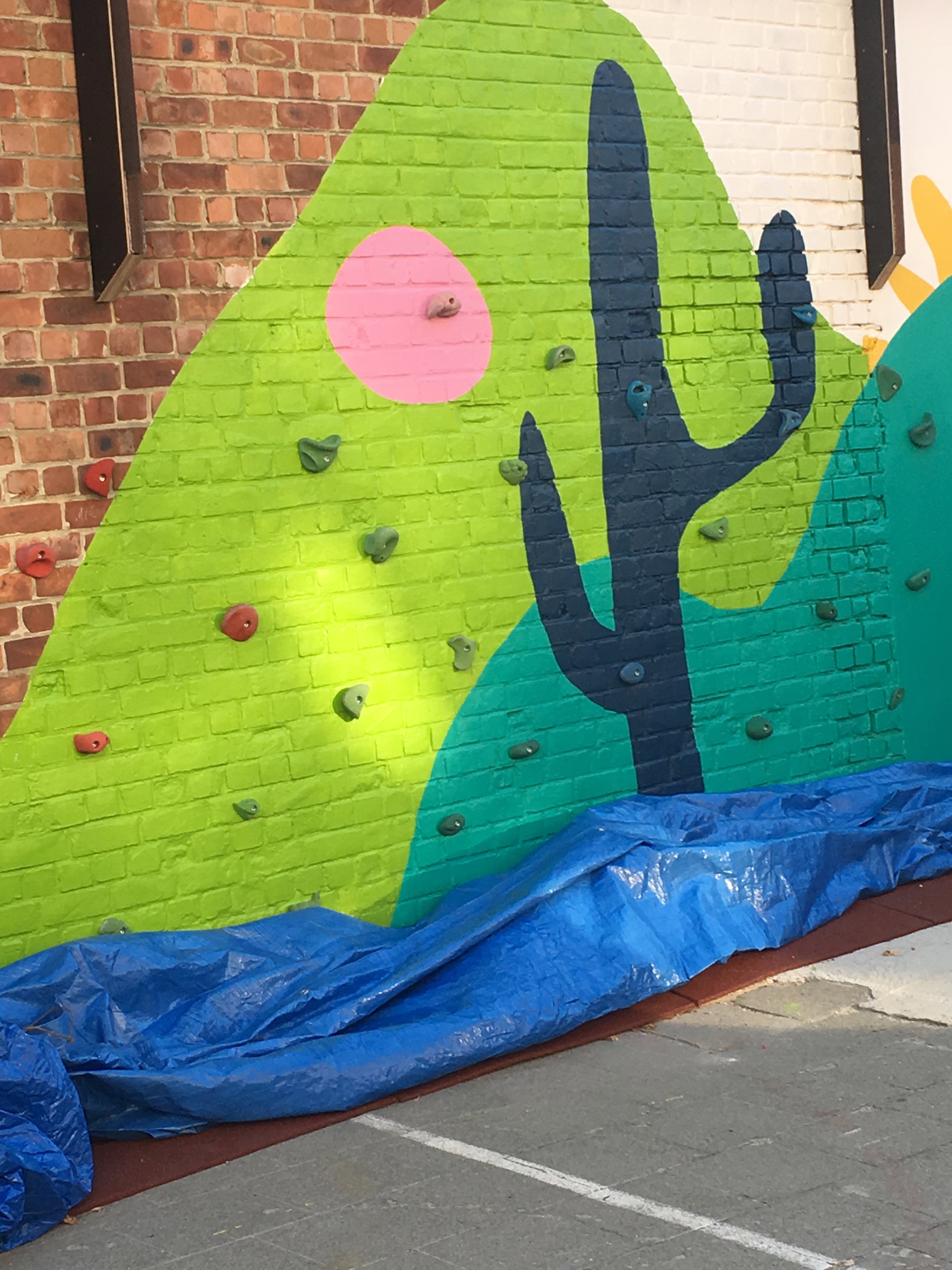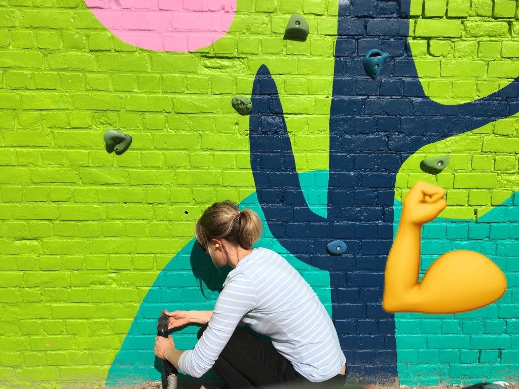 Eté 2019 : création d’une fresque et d’un mur d’escalade dans la cour de l’école