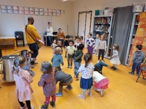 Les enfants ont pu écouter, manipuler les différents instruments présentés. Cette activité leur à permis de développer leur sens de l’écoute, du rythme et de la coordination tout en éveillant leur curiosité musicale.