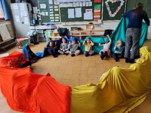 - Soit en jeux libres où les élèves pourront jouer, manipuler, réaliser des scénettes ou des jeux de rôle développant l’imagination et la mise en situation.