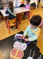 Durant les après-midi, certains professeurs des petites classes viennent également faire des activités dans les classes de 2ème et 3ème maternelles pendant que les petits font la sieste et sont surveillés par la puéricultrice.