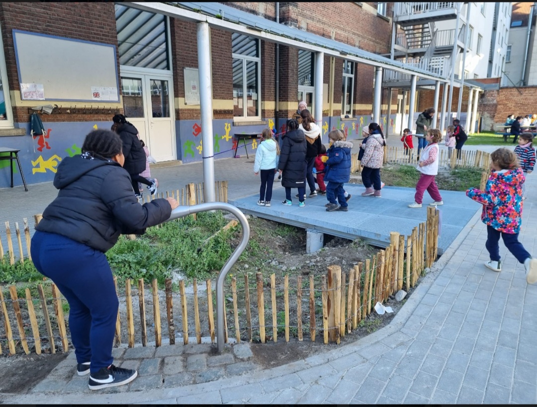 Nous avons eu la chance de compter parmi ces écoles et nous sommes ravis que nos élèves puissent bénéficier, de tout ce que ce bout de nature aura à leurs offrir. Cette transformation est une véritable solution climatique et un support d’apprentissage (gestion de l’eau, découverte de la production alimentaire (potager, verger),valorisation des ressources (compost, récupération), etc.).